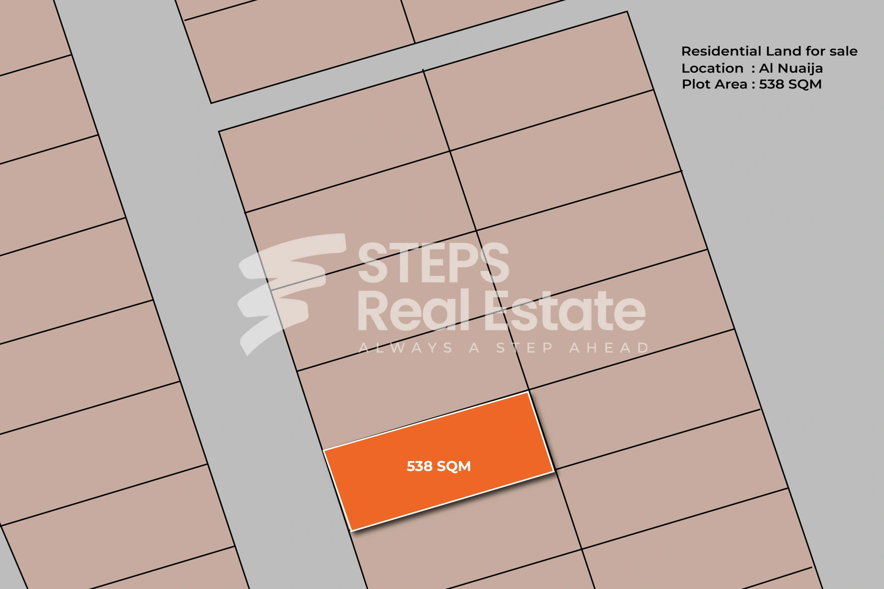 فرصة فريدة لامتلاك أرض سكنية مرخّصة لبناء فيلا في موقع مميز ضمن منطقة النعيجة الحيوية بمدينة الدوحة. تقع هذه الأرض وسط مجتمع سكني مكتمل يتميز بالهدوء، وتمنح مالكها سهولة الوصول إلى كافة المرافق والخدمات الحيوية من مدارس شهيرة وحدائق عامة ومجمعات تجارية. بمساحة 538 متر مربع، تُعد هذه الأرض الخيار الأمثل لتصميم وبناء فيلا أحلامك مع الاستفادة من إطلالة المدينة وإمكانية مواقف السيارات المخصصة.