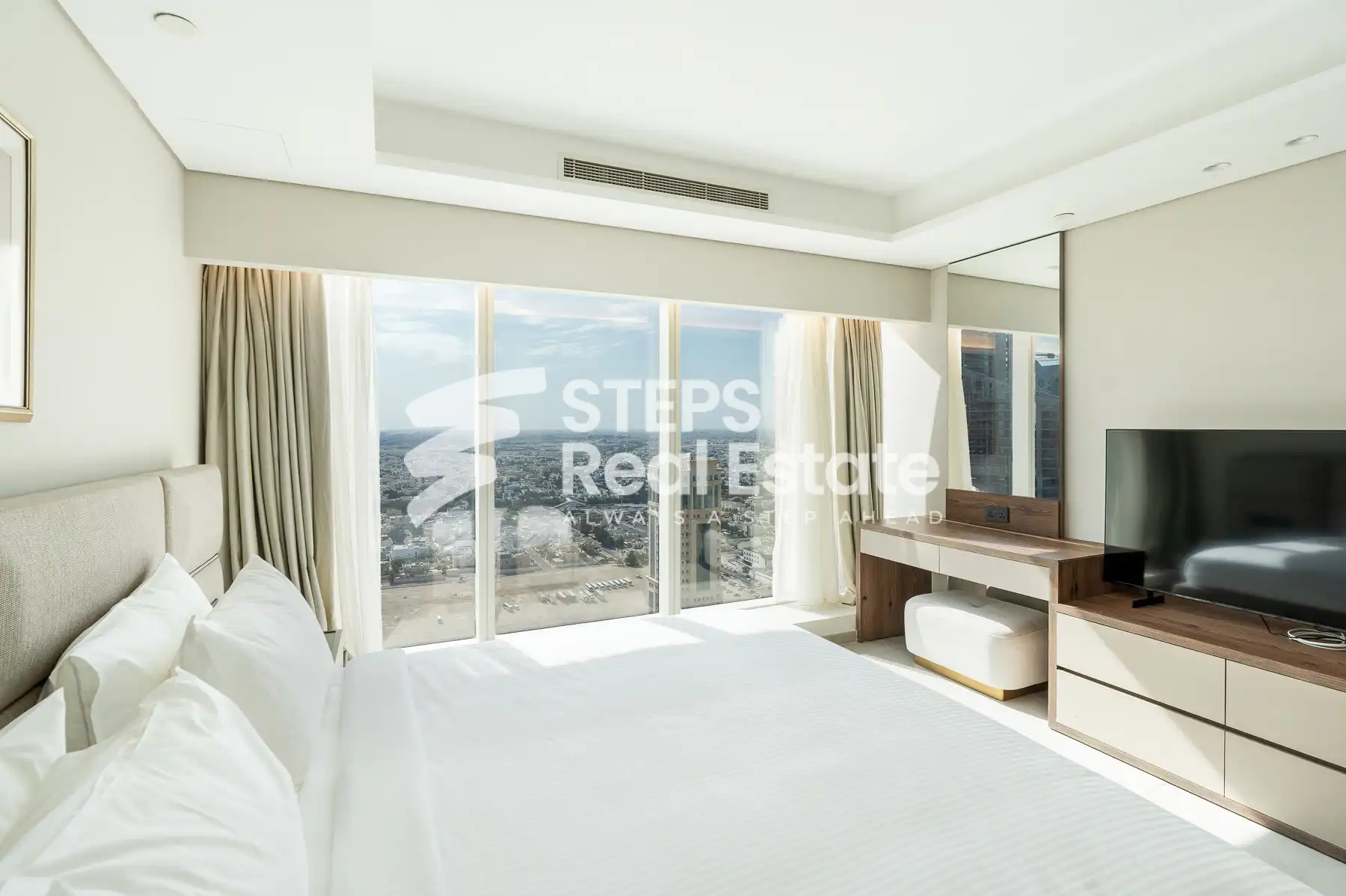 ابدأ حياتك بأسلوب عصري راقٍ في هذه الشقة الجديدة المفروشة التي تقدم خدمة تنظيف أسبوعية، وتقع في قلب منطقة الخليج الغربي، إحدى أكثر مناطق الدوحة حيوية وتميزاً. تتيح لك مناطق المعيشة المشرقة الاستمتاع بأجواء هادئة وإطلالة بانورامية على المدينة، مع تصميم داخلي أنيق يعكس التوازن بين الراحة والحداثة، ليمنحك تجربة سكنية متكاملة تلبي تطلعاتك اليومية وتوفر لك أعلى درجات الراحة. كما يوفر الموقع الاستراتيجي سهولة الوصول إلى أهم الوجهات التجارية والترفيهية، مما يجعلها خياراً مثالياً للحياة العصرية.