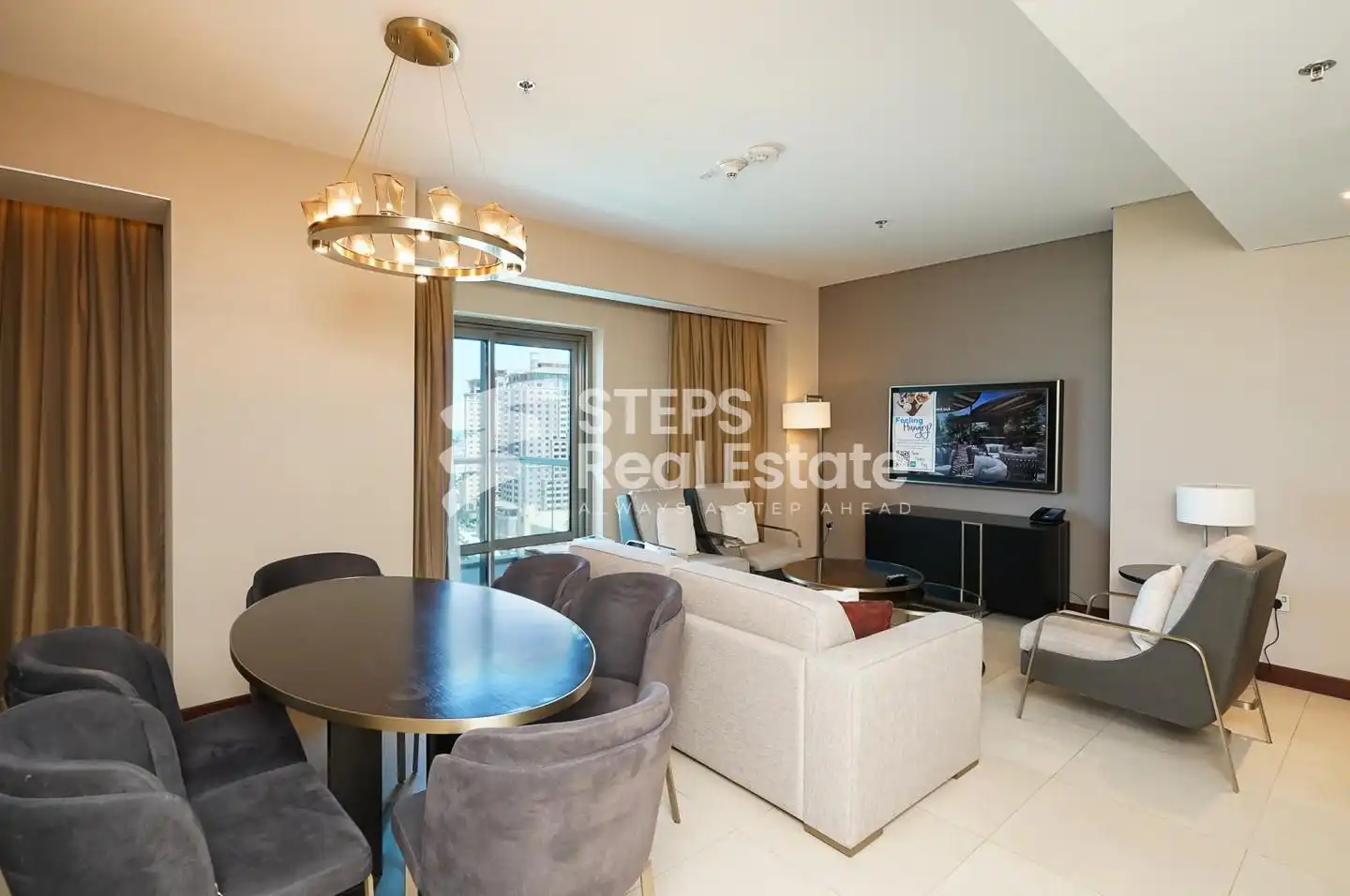 هل ترغب في الارتقاء بأسلوب حياتك؟ توفر هذه الشقة الفندقية الفاخرة للإيجار في اللؤلؤة فرصة لا تُضاهى لمن يُقدّرون الراحة والرفاهية والإطلالات البانورامية. تقع هذه الوحدة المفروشة بالكامل في طابق مرتفع، وتتميز بشرفة واسعة تُطل على مناظر خلابة للبحر والمدينة، مما يُرسي معايير جديدة للحياة الحضرية الفاخرة.