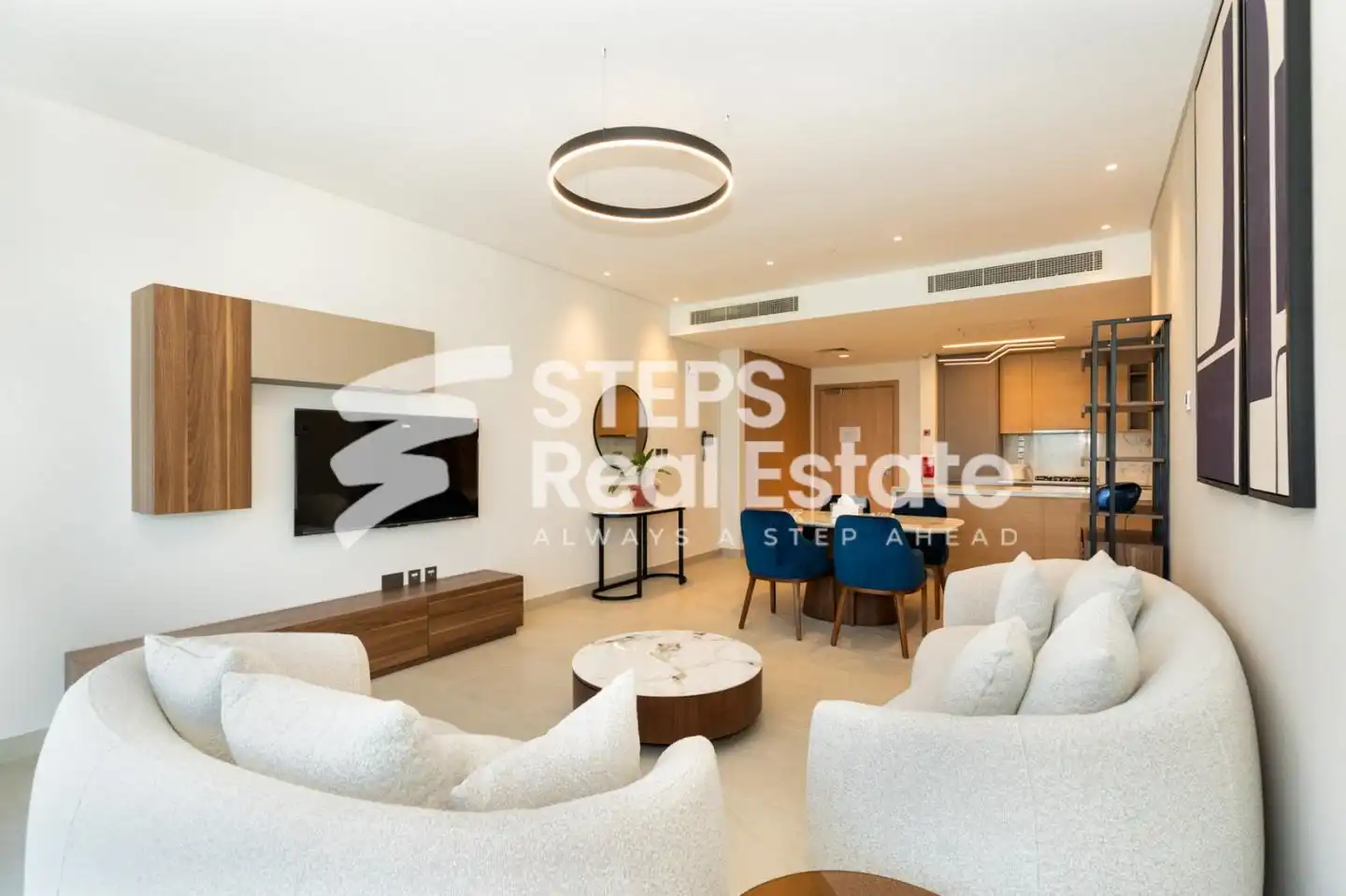 شقة فاخرة مع فواتير مشمولة وإطلالات على البحر للإيجار في لوسيل