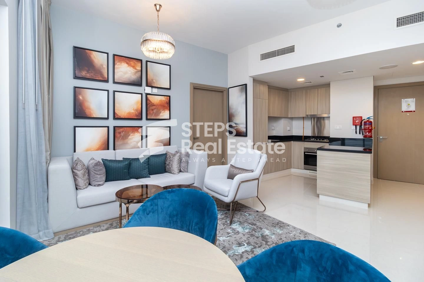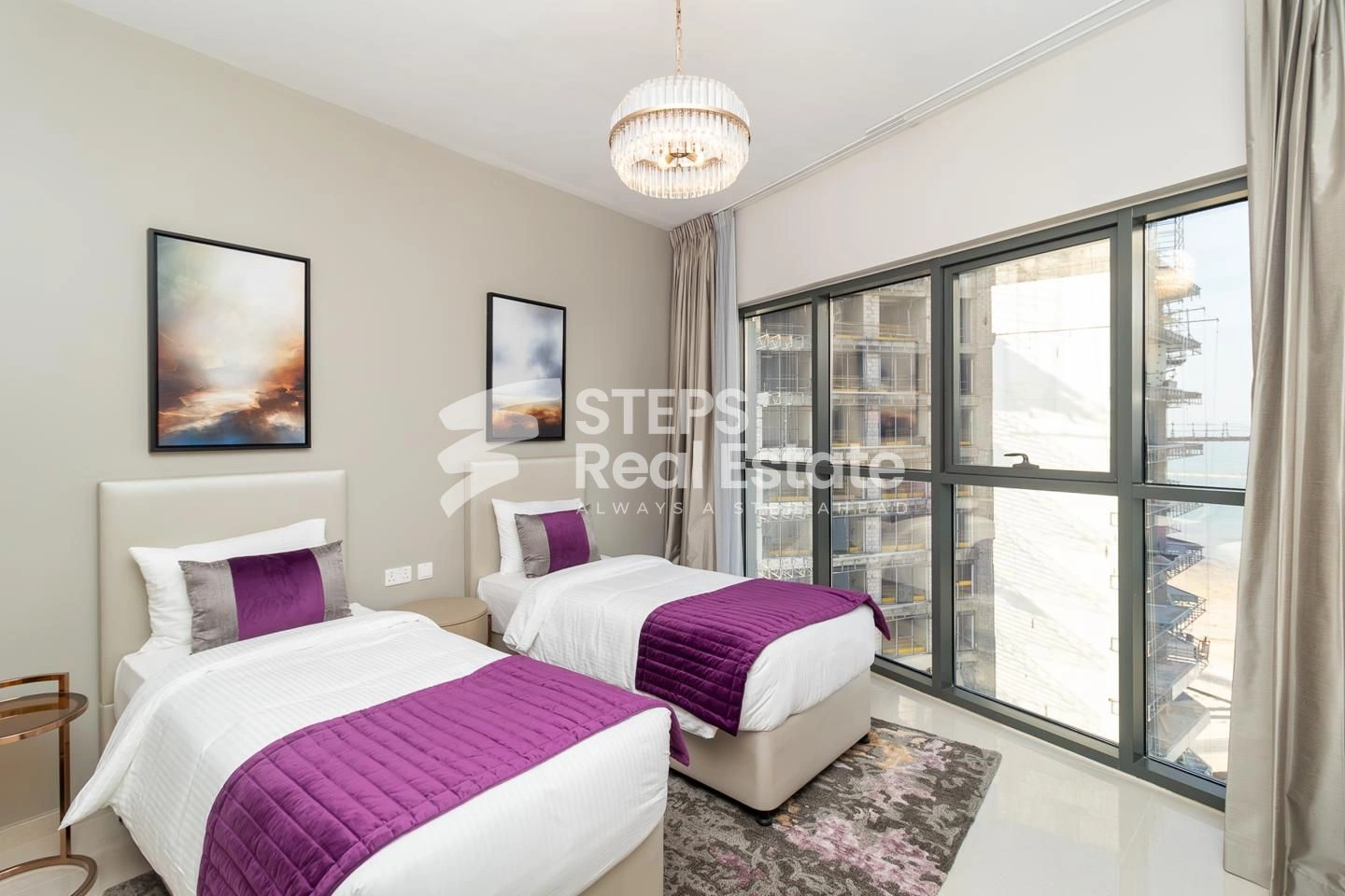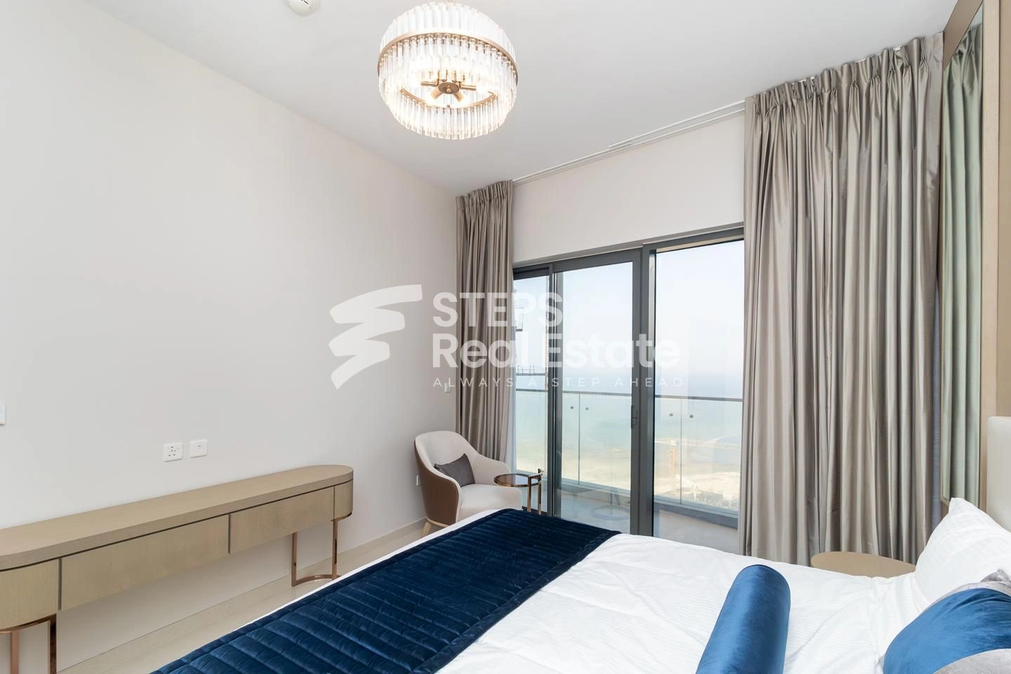 شقة فاخرة مكونة من غرفتي نوم مع شرفة وإطلالة على البحر للبيع في لوسيل