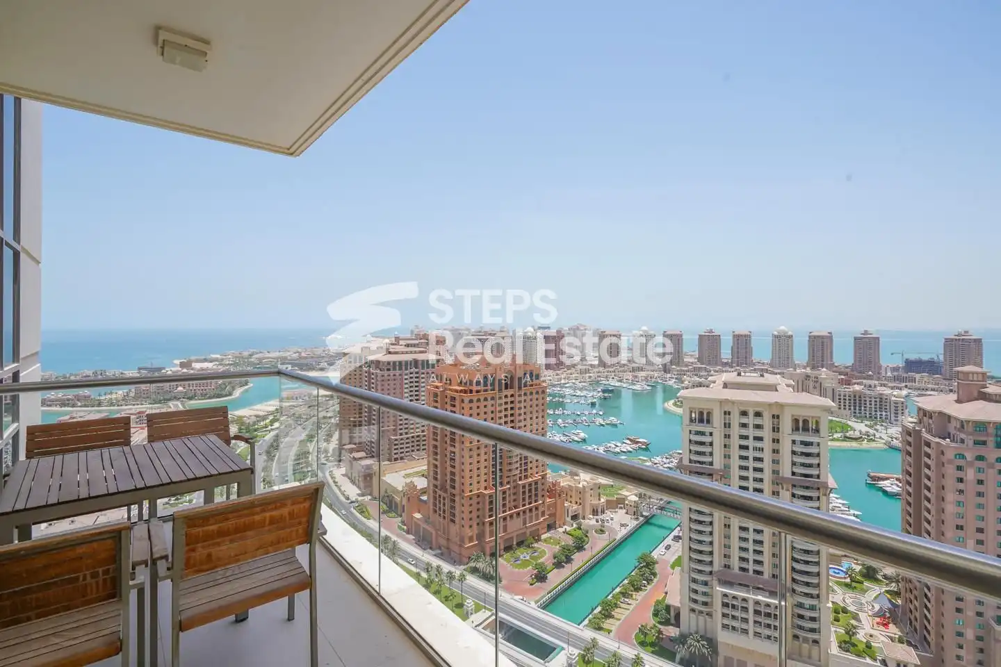 انعم بحياة راقية مع هذه الشقة الفندقية الفاخرة المفروشة بالكامل للإيجار في اللؤلؤة. تقع هذه الشقة الرائعة في طابق علوي، وتتميز بإطلالات خلابة على البحر والمدينة، مثالية للاستمتاع بأفق قطر الأخّاذ.