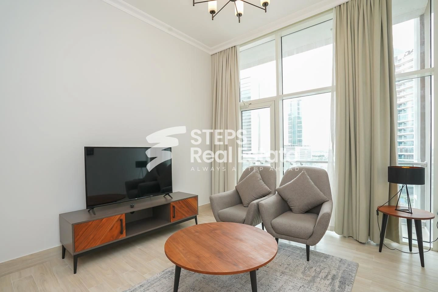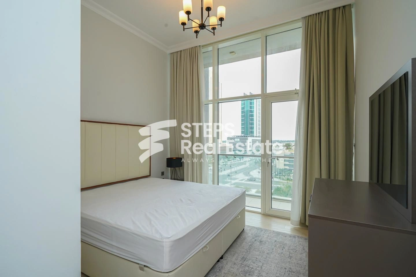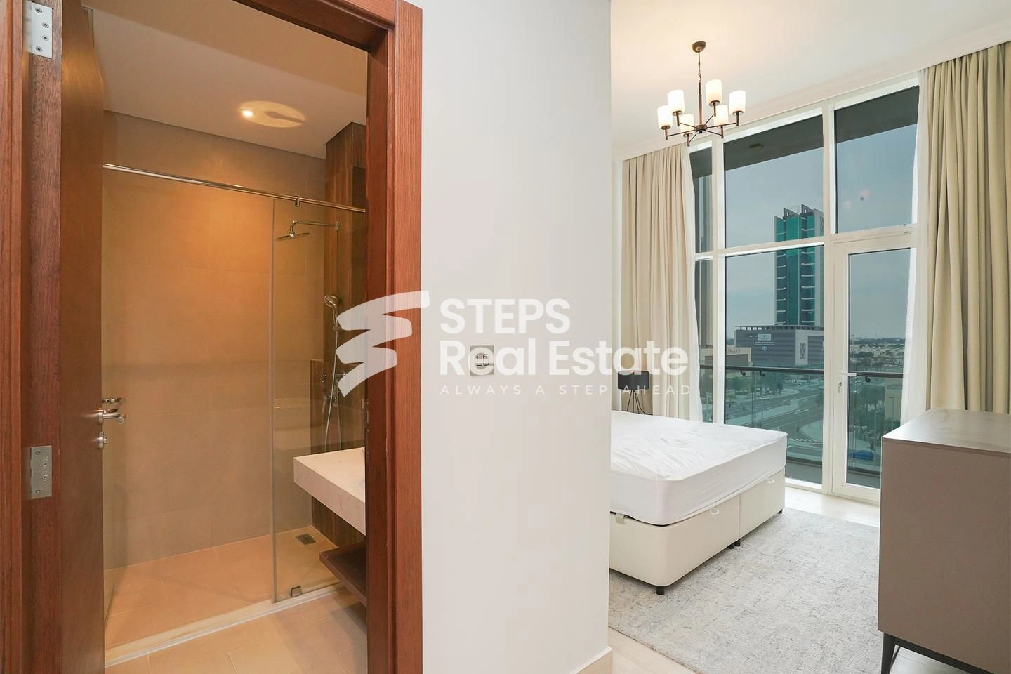 شقة مفروشة بغرفة نوم مع إطلالة على المدينة للإيجار في لوسيل