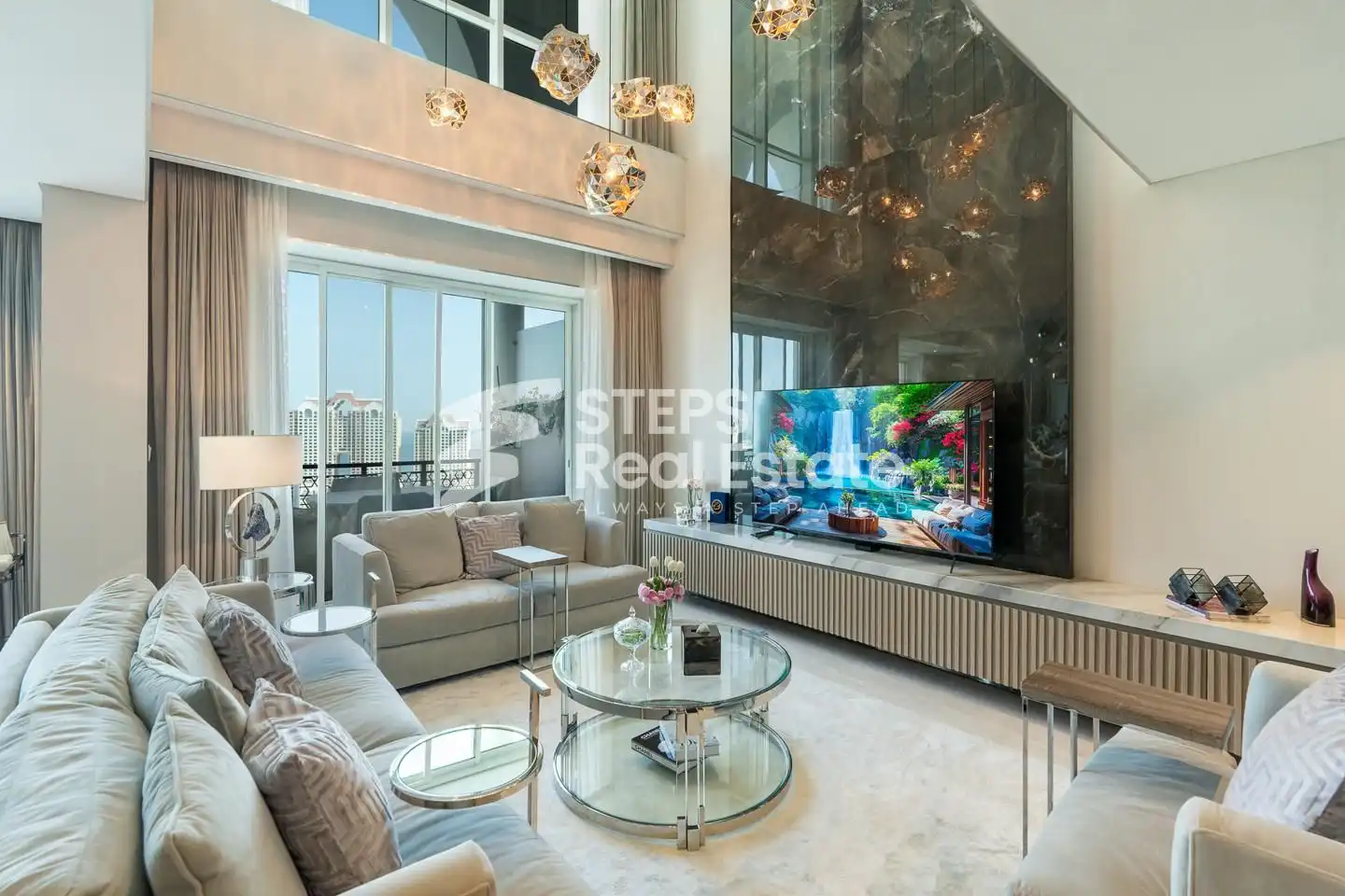 بنتهاوس دوبلكس فاخر جداً للإيجار في اللؤلؤة – مفروش بإطلالة بحرية