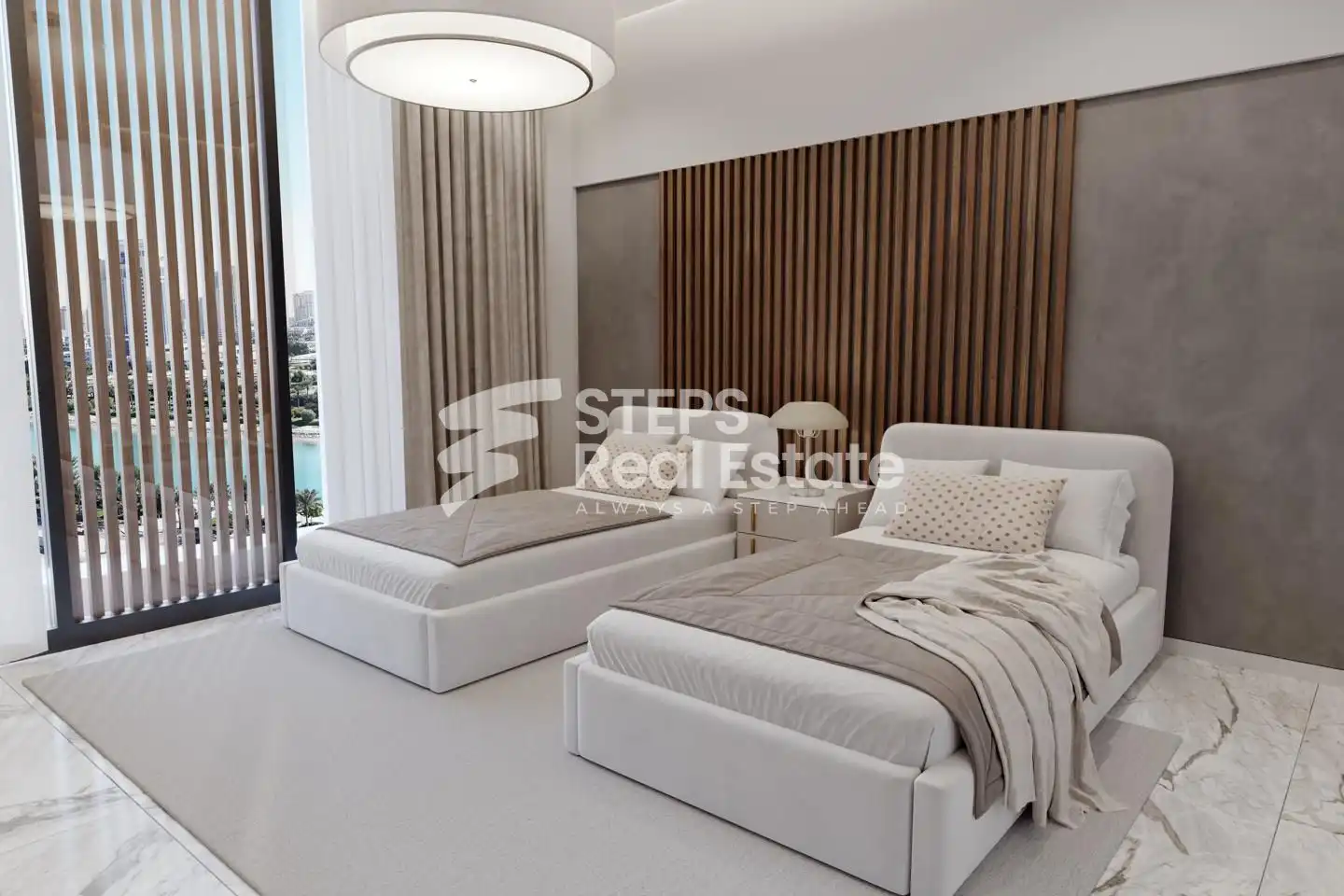 شقة أنيقة بإطلالة على المدينة وتراس في مارينا لوسيل