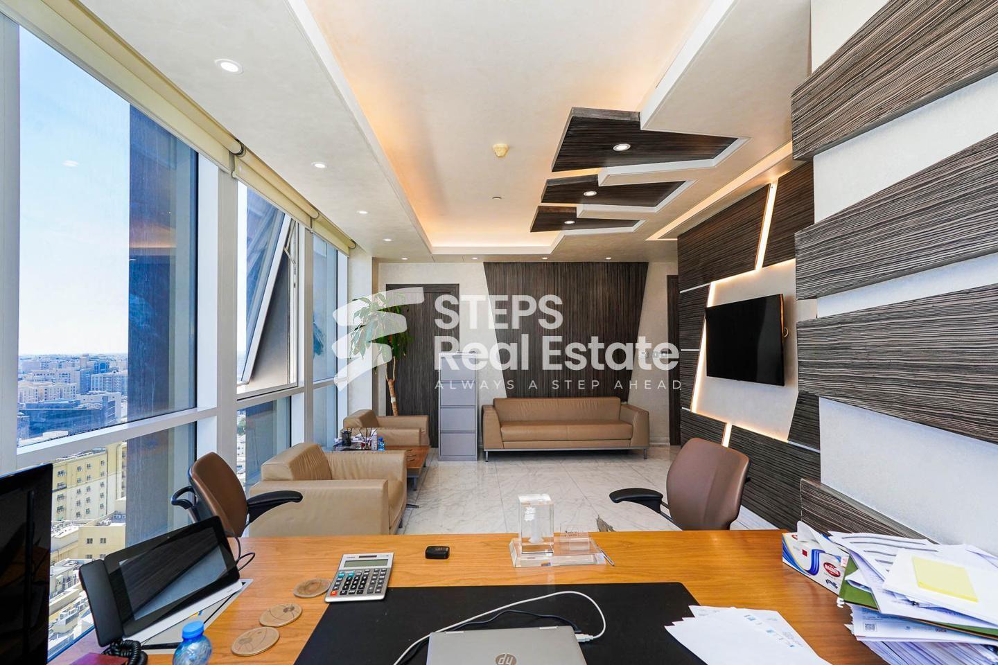 فترة سماح 2 أشهر | مكتب فاخر مؤثث بالكامل للإيجار في السد