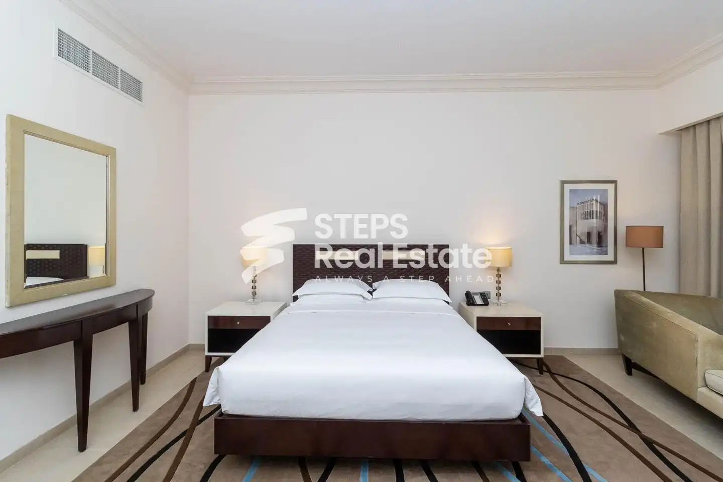 • خدمة التنظيف مرتين أسبوعياً وفقاً لجدول الفندق.