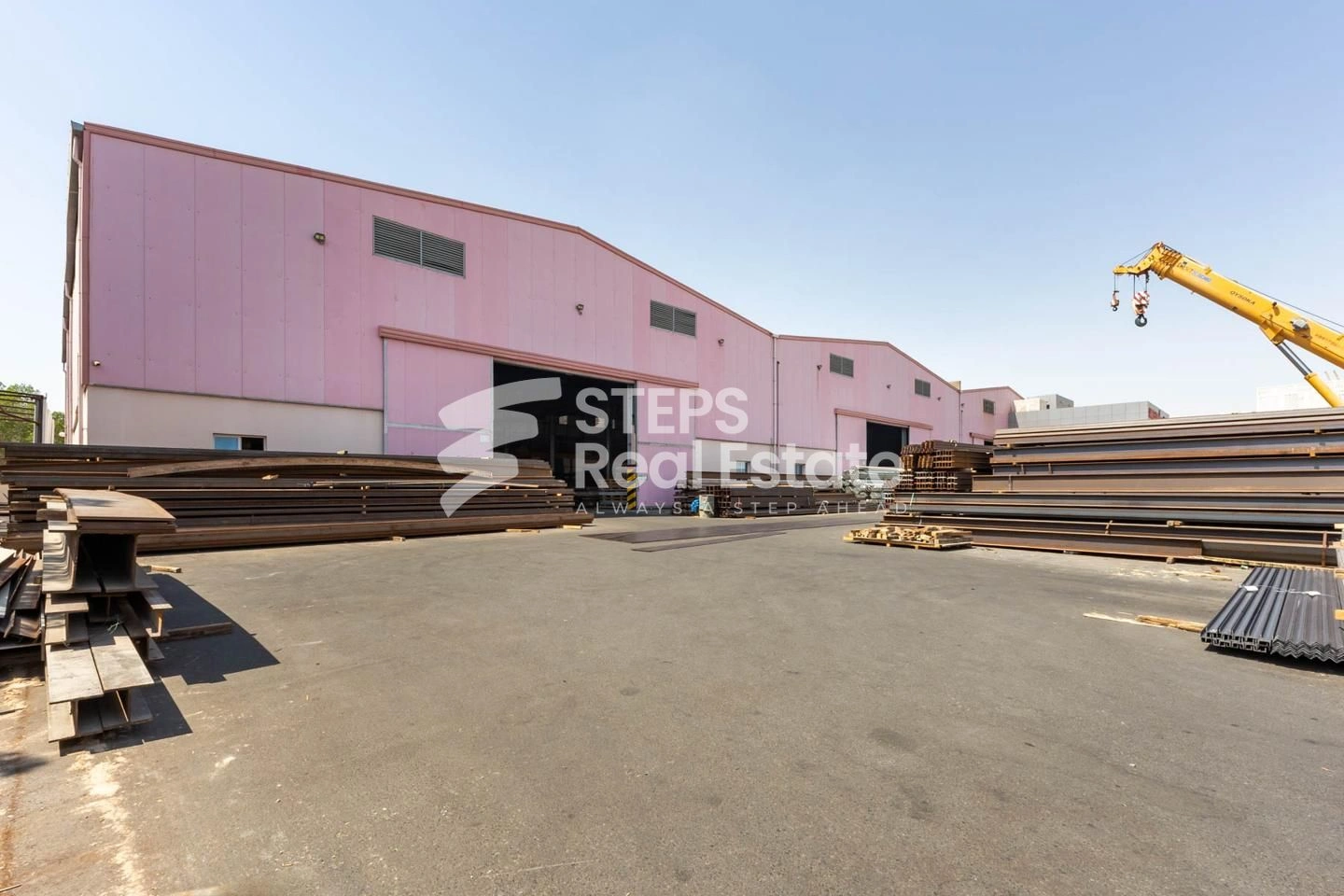 مصنع بمساحة 6,538 متر مربع مع ورش ورافعتين – مستودع للإيجار في المنطقة الصناعية