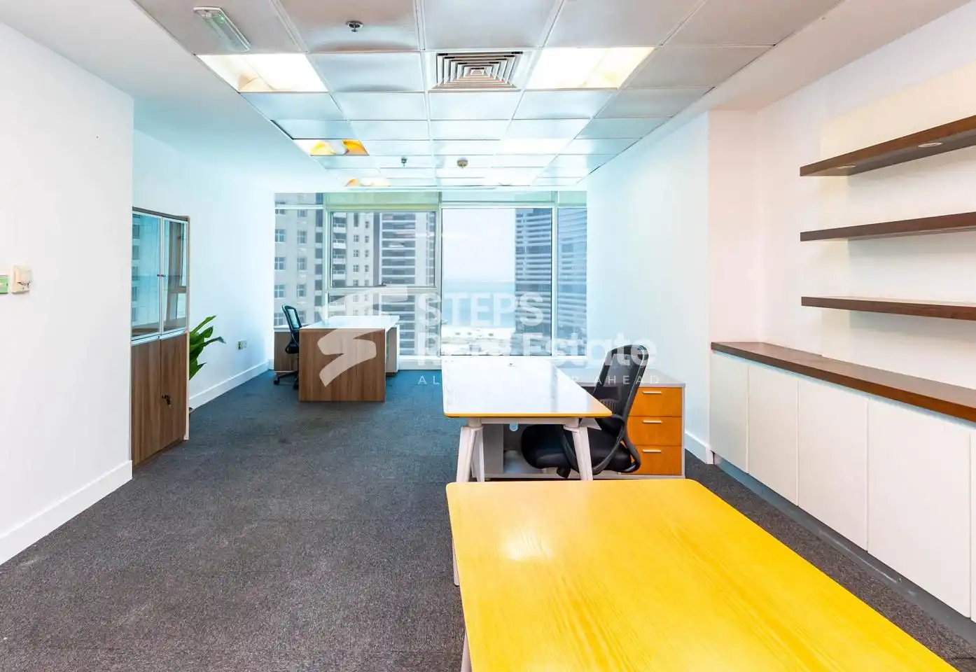 مكتب في مركز أعمال مفروش بالكامل للإيجار في الخليج الغربي بإطلالة على البحر والمدينة