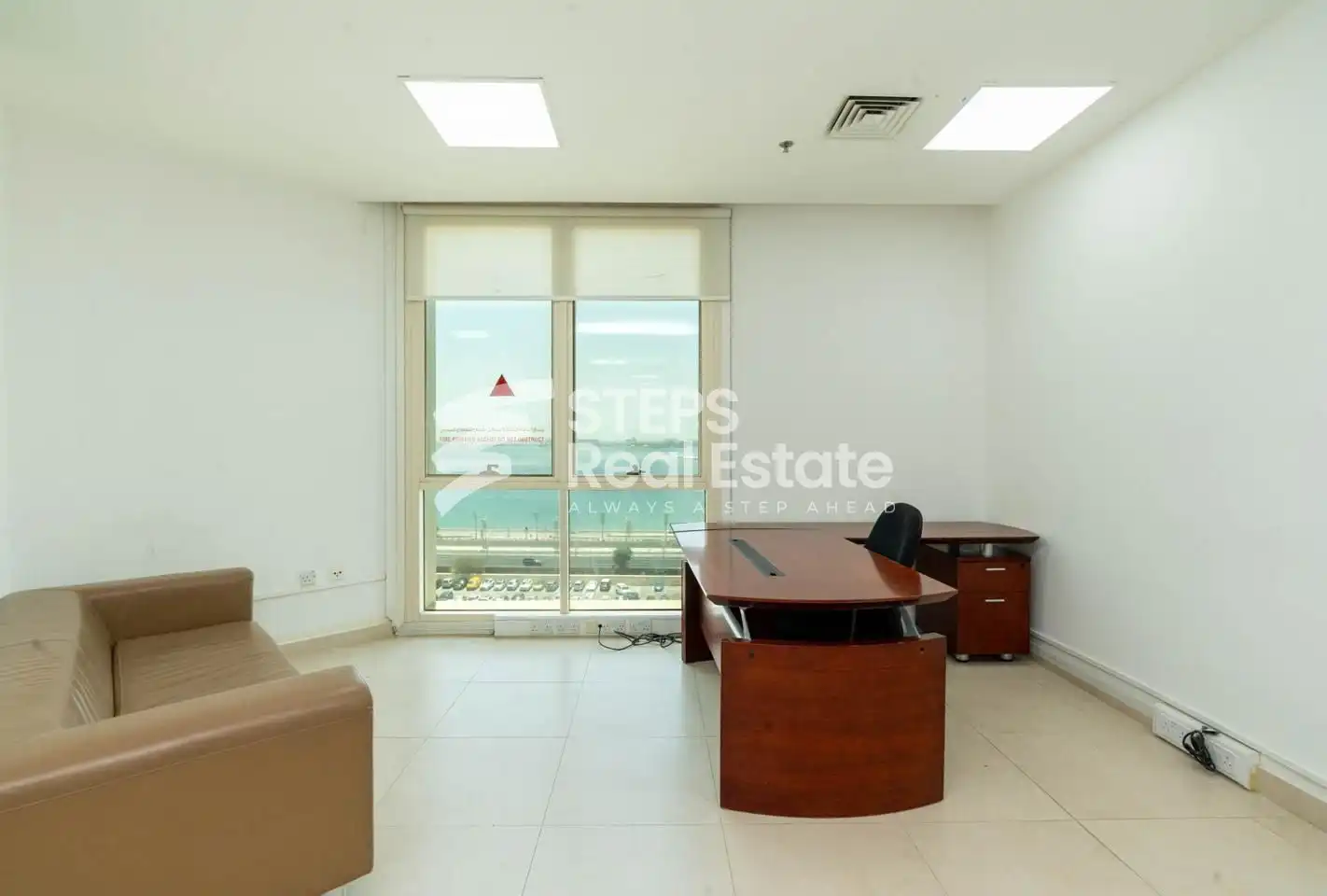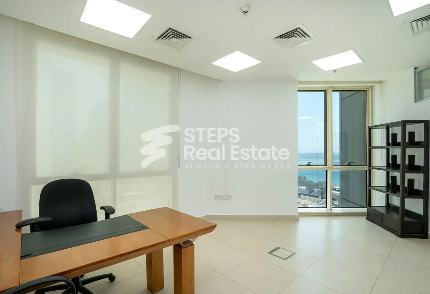 مكتب تجاري عصري للإيجار في الخليج الغربي بإطلالة بانورامية على البحر والمدينة