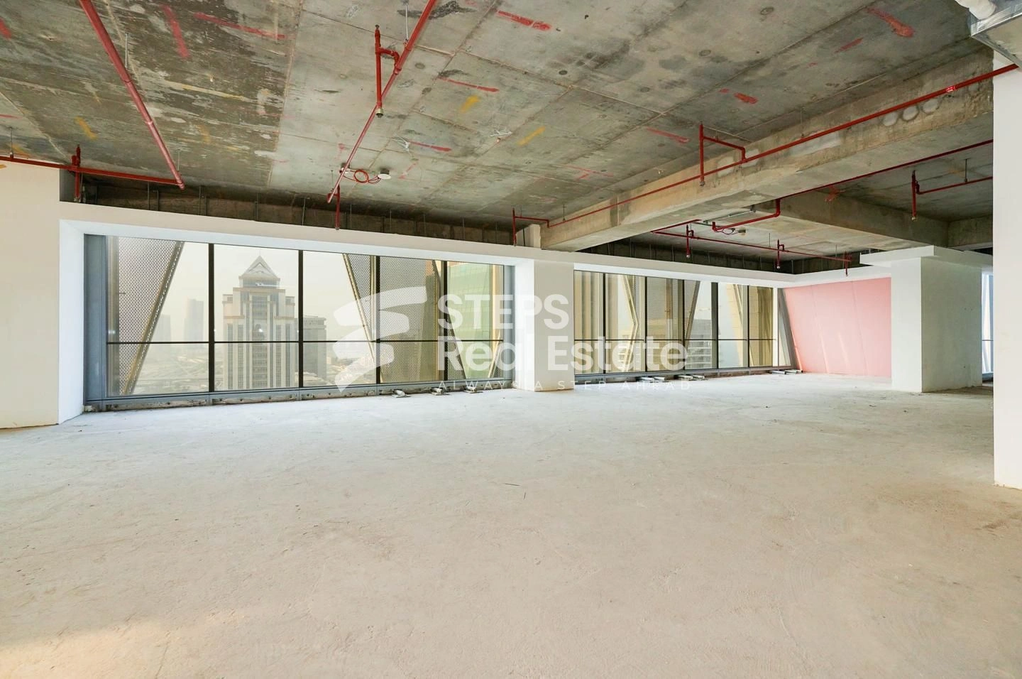 يوفر هذا المكتب بدون تشطيب مساحة مفتوحة واسعة تتيح حرية كاملة في تصميم وتجهيز المقر وفق احتياجات العمل الخاصة بك. سواء كنت ترغب في إنشاء مكاتب خاصة، أو مناطق عمل مشتركة، أو غرف اجتماعات، أو تصميم متكامل يعكس هوية شركتك، فإن البنية المرنة تتيح لك تنفيذ رؤيتك بسهولة. كما تضفي النوافذ الممتدة من الأرضية إلى السقف ضوءًا طبيعيًا وإطلالات خلابة على المدينة، مما يعزز بيئة العمل ويضيف لمسة مميزة للمكان.
