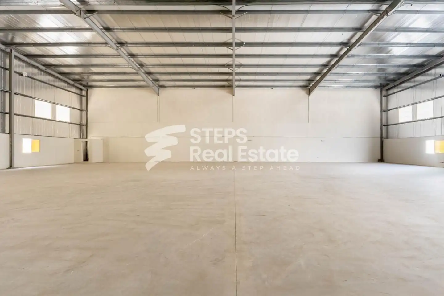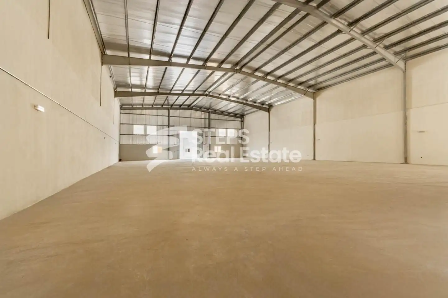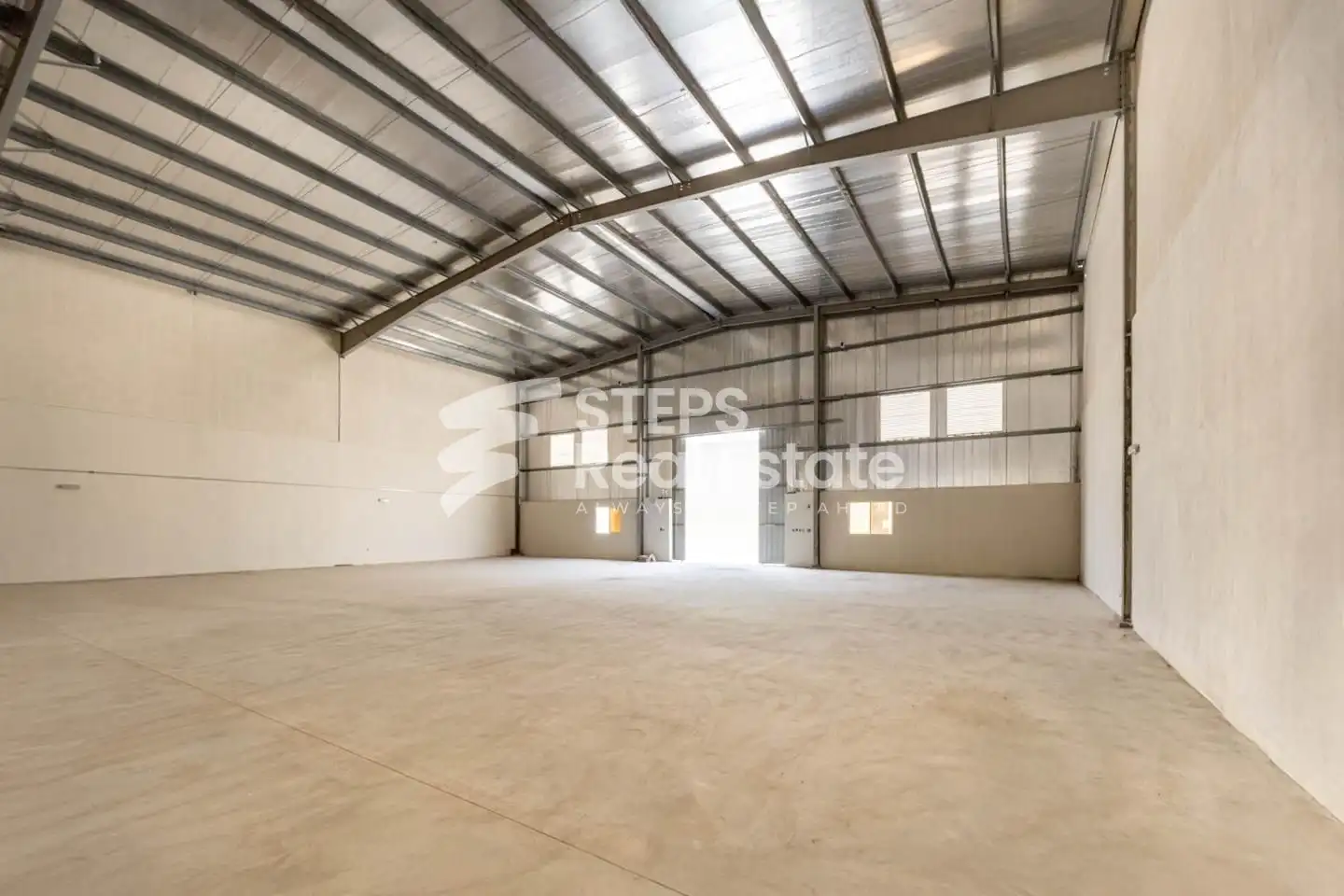 The warehouse features a spacious open layout that supports smooth movement of goods, vehicles, and equipment. Its functional design allows flexible space planning, making it easy to adapt the warehouse to different operational requirements without limitations.