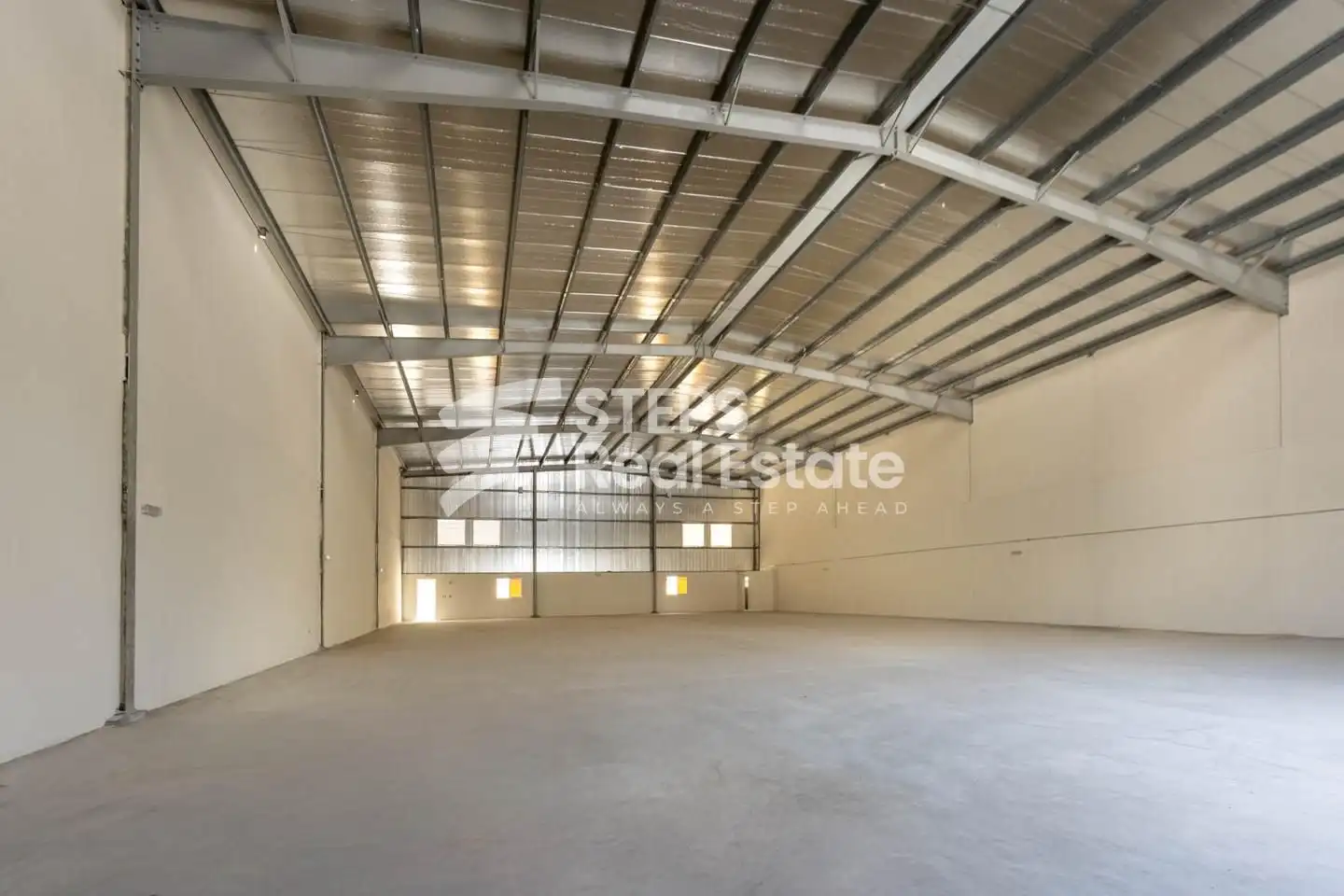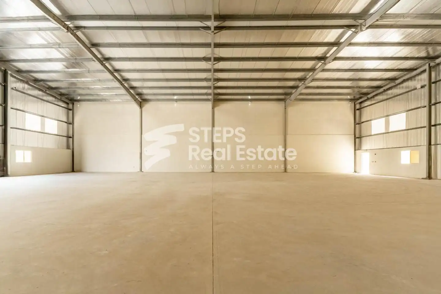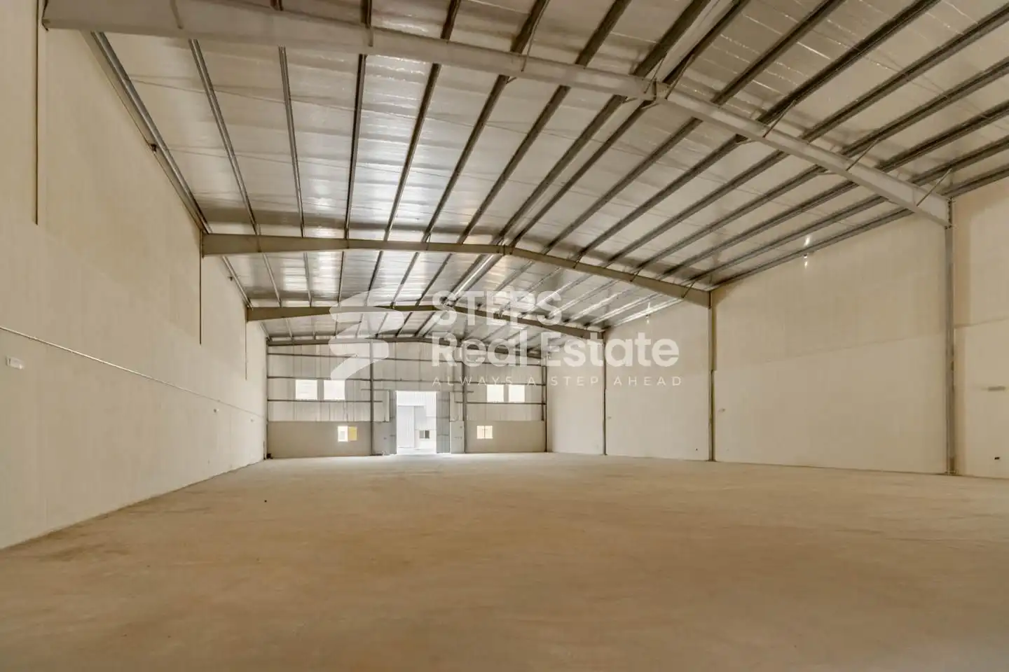 The warehouse features a spacious open layout that supports smooth movement of goods, vehicles, and equipment. Its functional design allows flexible space planning, making it easy to adapt the warehouse to different operational requirements without limitations.