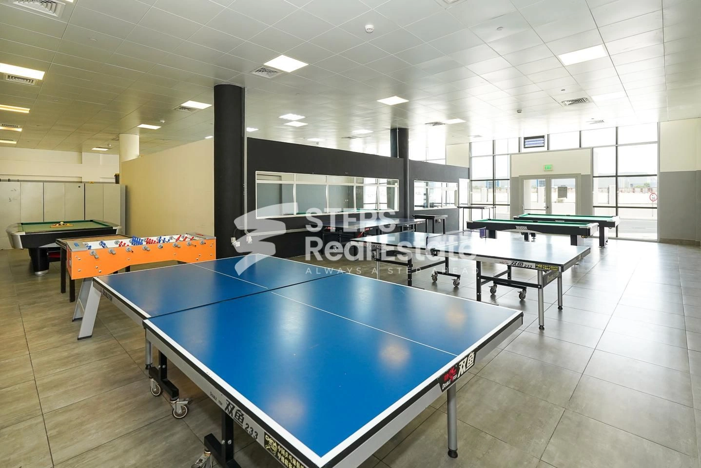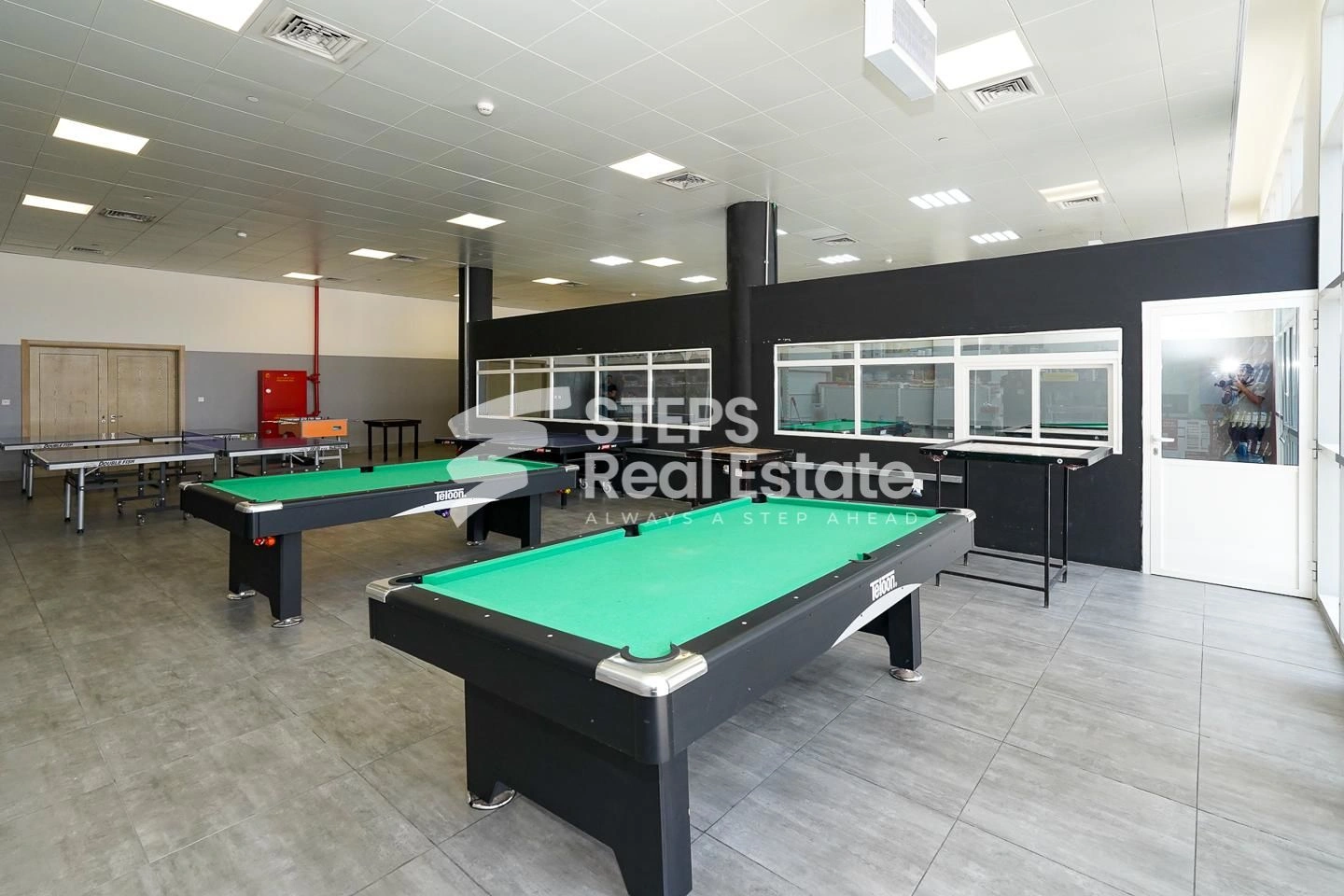 • Equipped with entertainment facilities, such as volleyball court, pool tables, table football, table tennis, outdoor gym, a supermarket, a barber shop and a mosque.