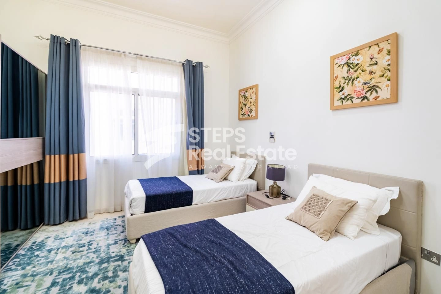 This fully furnished two-bedroom luxury compound apartment for rent in Al Waab offers a warm blend of comfort, style, and privacy, making it an ideal choice for anyone seeking a refined home in one of Doha’s most desirable residential areas. From the moment you enter, the apartment welcomes you with bright spaces, tasteful furnishings, and a layout that feels both practical and inviting.