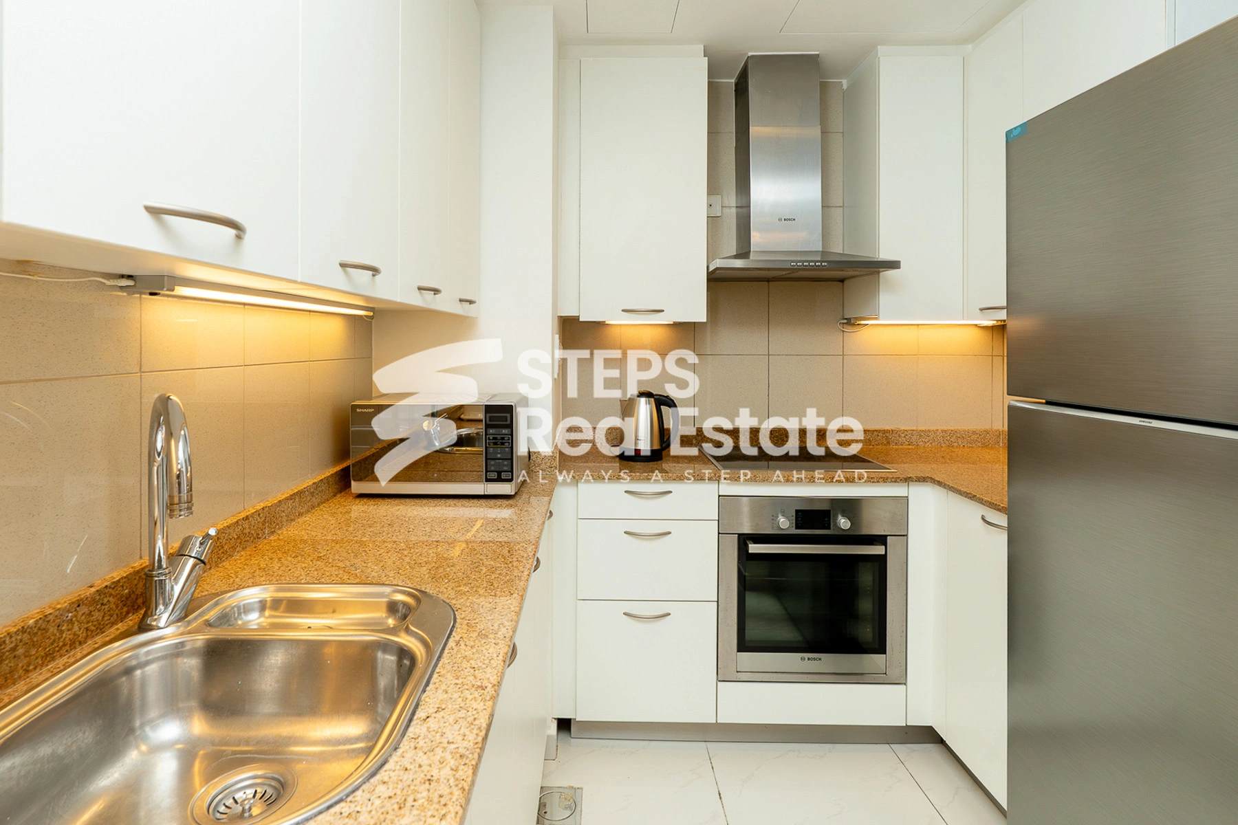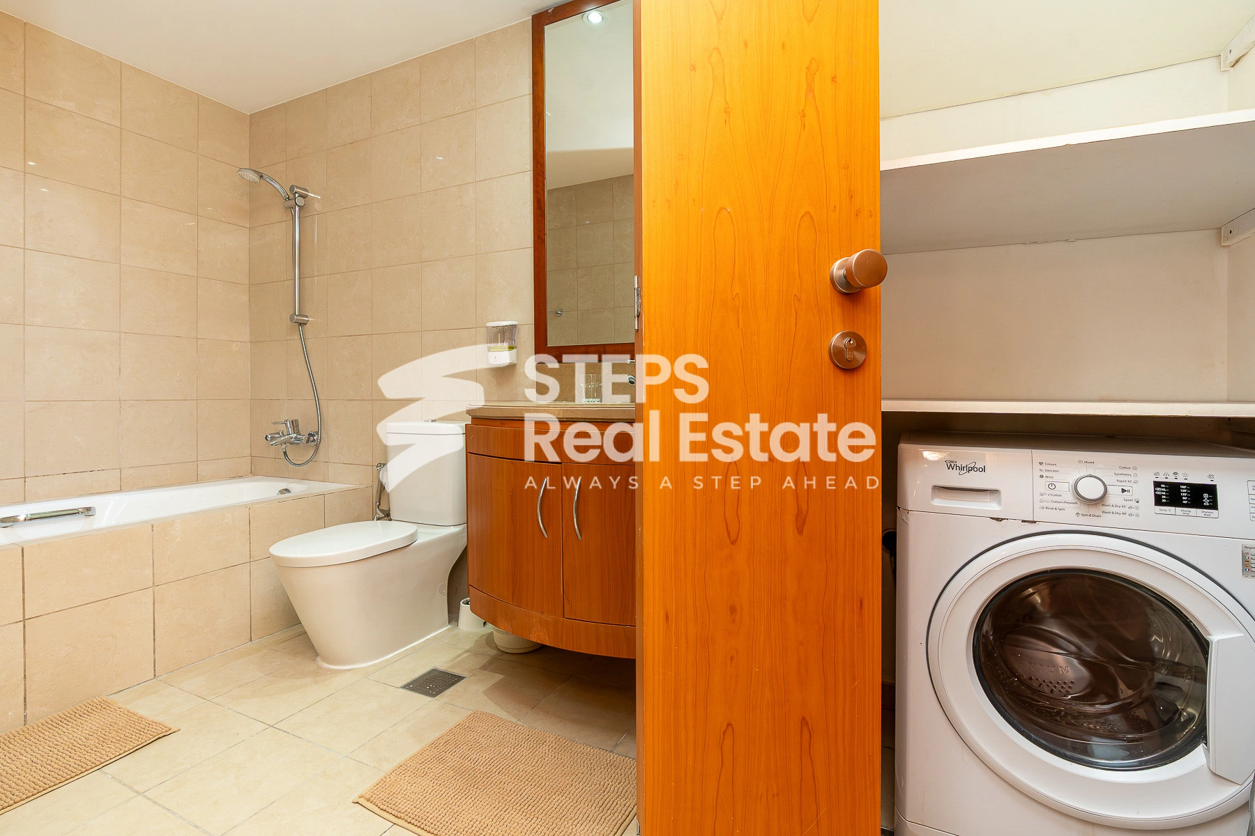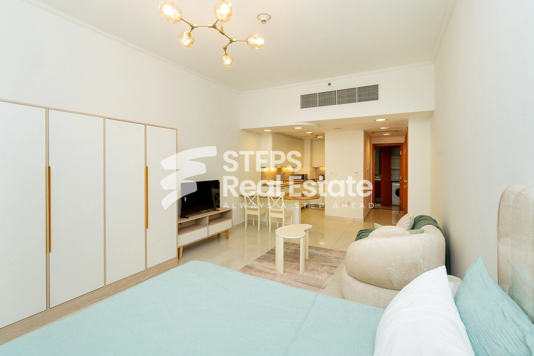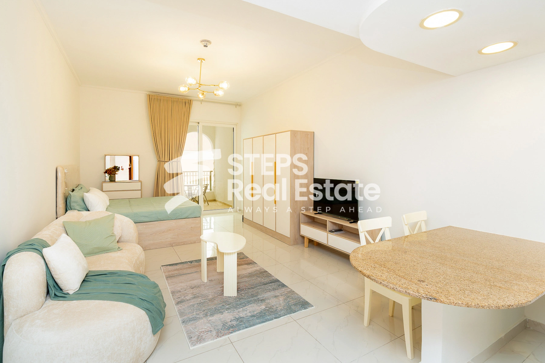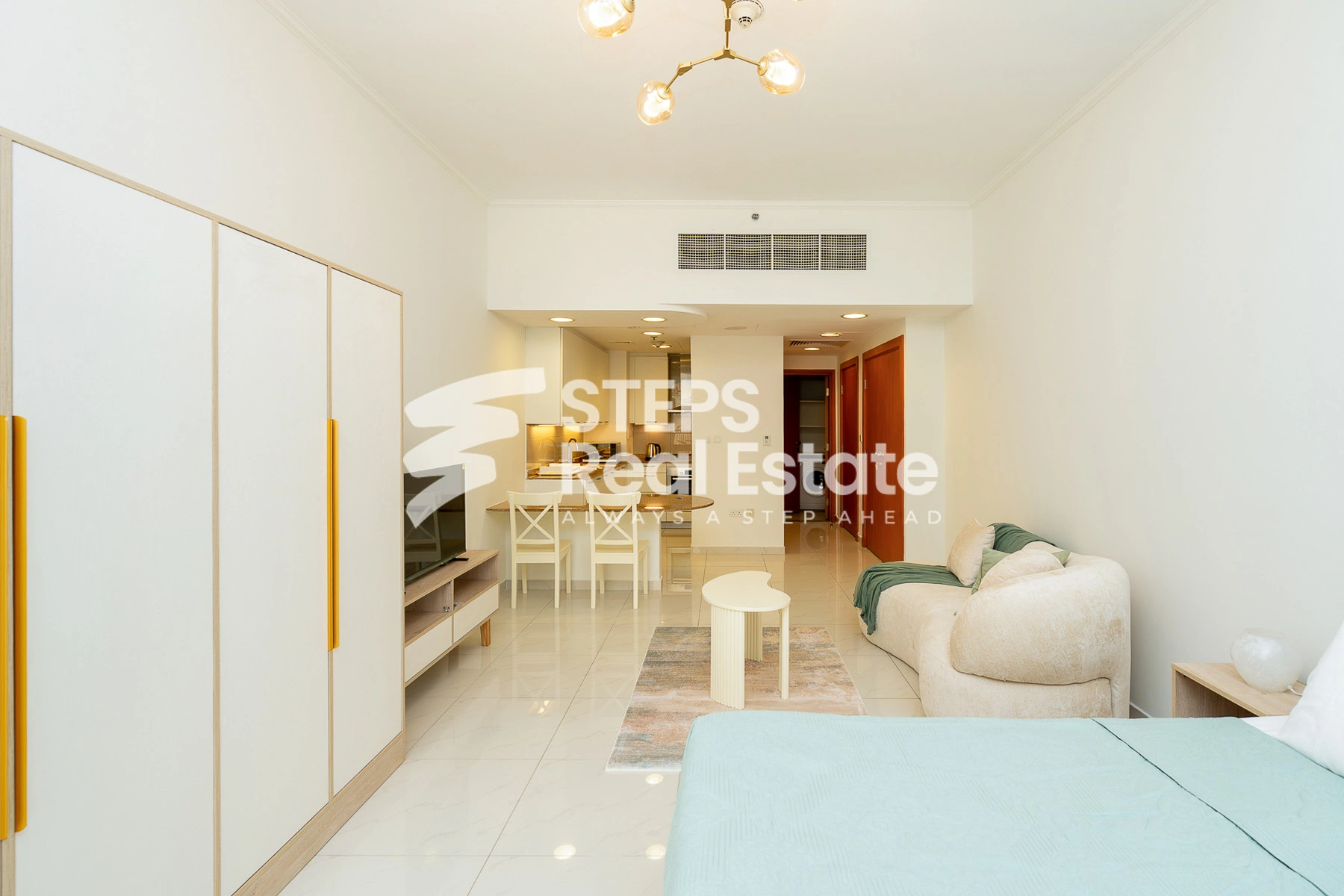 Experience the tranquility of coastal living in this fully furnished apartment, perfectly situated in the highly sought-after Viva Bahriya district of The Pearl Island—one of Qatar’s most prestigious waterfront communities. This modern residence offers a seamless blend of comfort, elegance, and everyday convenience within a vibrant seaside environment known for its resort-style amenities, direct beach access, and refined lifestyle. Ideal for individuals or couples seeking a spacious yet sophisticated home, the apartment features a bright living room filled with natural light, a dedicated dining area, and a contemporary open kitchen designed for both functionality and style. The master bedroom serves as a peaceful retreat, complete with a walk-in closet and an attached bathroom finished to a high standard. Step onto the private balcony to enjoy beautiful sea and city views, creating the perfect setting for relaxation or entertaining guests.
