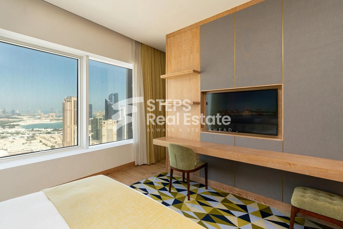 Discover this luxurious, fully furnished hotel apartment for rent in the prestigious West Bay, offering breathtaking open views. With high-end finishes and prime location, this property provides comfort and convenience for discerning buyers. Invest in a lifestyle of elegance and accessibility, perfect for those seeking a sophisticated urban retreat.