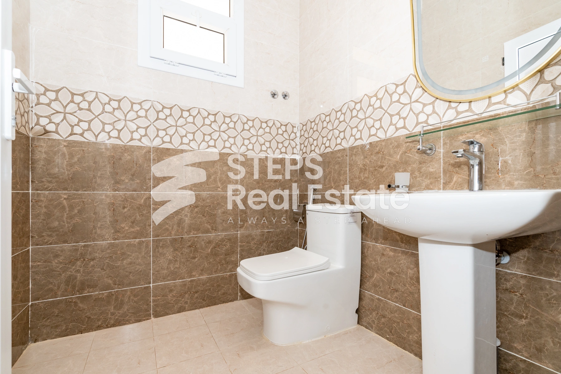 Experience contemporary living in this brand new, unfurnished stand-alone villa for rent in Qatar in Al Thumama, Doha—a highly sought-after residential district known for its vibrant community and proximity to essential amenities. This property stands out for its excellent location, ideal for those seeking comfort, convenience, and a family-friendly environment. Enjoy privacy, a practical layout, and a serene private garden, making it an outstanding choice for those eligible for ownership under the eskan programme.